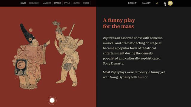 在《千年调·宋代人物画谱》数字展中还有一个典藏区《赏画》栏目,收集了来自故宫博物院、上海博物馆、辽宁省博物馆、黑龙江省博物馆、天津博物馆、台北故宫博物院、波士顿美术博物馆、大都会艺术博物馆、克利夫兰艺术博物馆、弗利尔美术馆等全球10家博物馆的110幅高清宋画珍品精选展出。