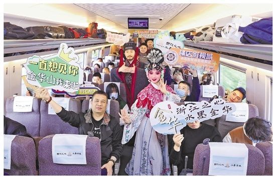 4月1日下午,G99次列车从上海虹桥站缓缓驶出,驶向香港西九龙站,标志着因疫情等原因阔别3年的上海虹桥至香港西九龙G99次列车恢复开行,列车途经浙江、江西、广东,抵达香港。值得一提的是,该列车是由金华市文广旅游局和金华双龙风景区联合冠名的金华文旅高铁品牌专列,当天在上海虹桥站举行了品牌专列首发仪式。(陈薇 朱浙萍)