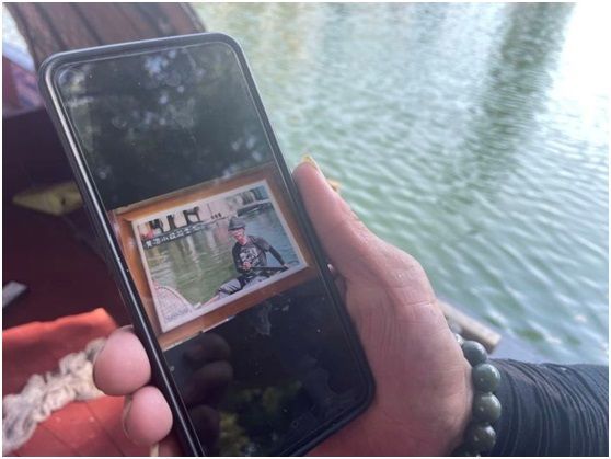 “才一年的时间,这里热闹了很多!”尽管在这里工作才一年左右,但细心的周炳良手机里收藏了许多关于这座小镇与游客的记忆,水波荡漾间,周炳良见证着小镇不断焕发新的生机。“看着这里的店铺一点点装修,人也慢慢多了起来,很多游客都爱来体验乌篷船。”提起遇到的乘客,周炳良拿起船头放置的一顶乌毡帽介绍,这顶帽子就是为游客准备的。“不少客人坐在船上,总会喊我戴上乌毡帽配合拍照,要拍摇船的视频,还会让我摇慢一点,我都会配合的。”在周炳良记忆里,来此游玩的客人们对乌篷船这一绍兴文化符号总会格外感兴趣。令他印象最深的是,一位外地游客曾在这里拍摄了他划船的场景,第二次再来时,他特意带来了两张冲印好的照片。