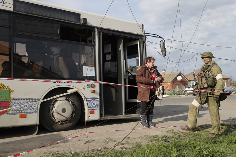 5月1日,在顿涅茨克别济缅诺耶,从马里乌波尔市的亚速钢铁厂及周边地区撤出的平民抵达安置点。