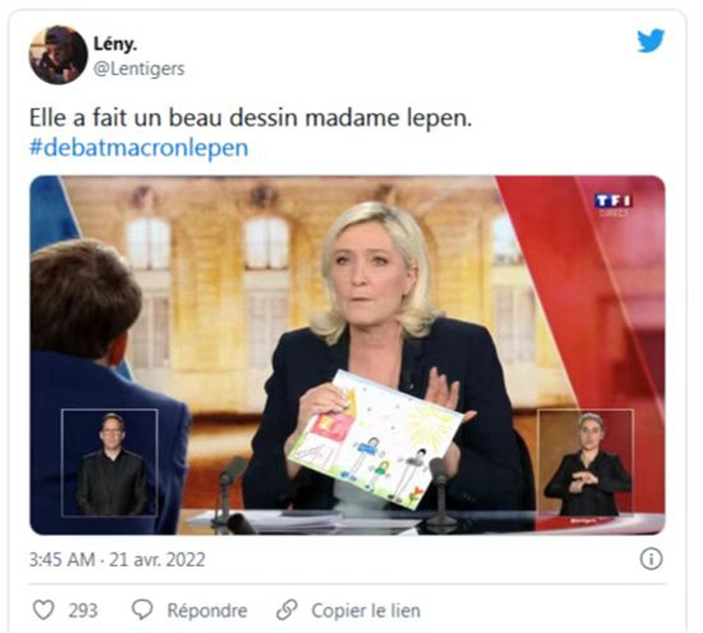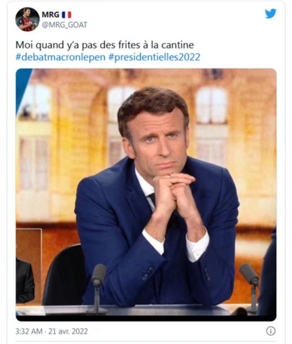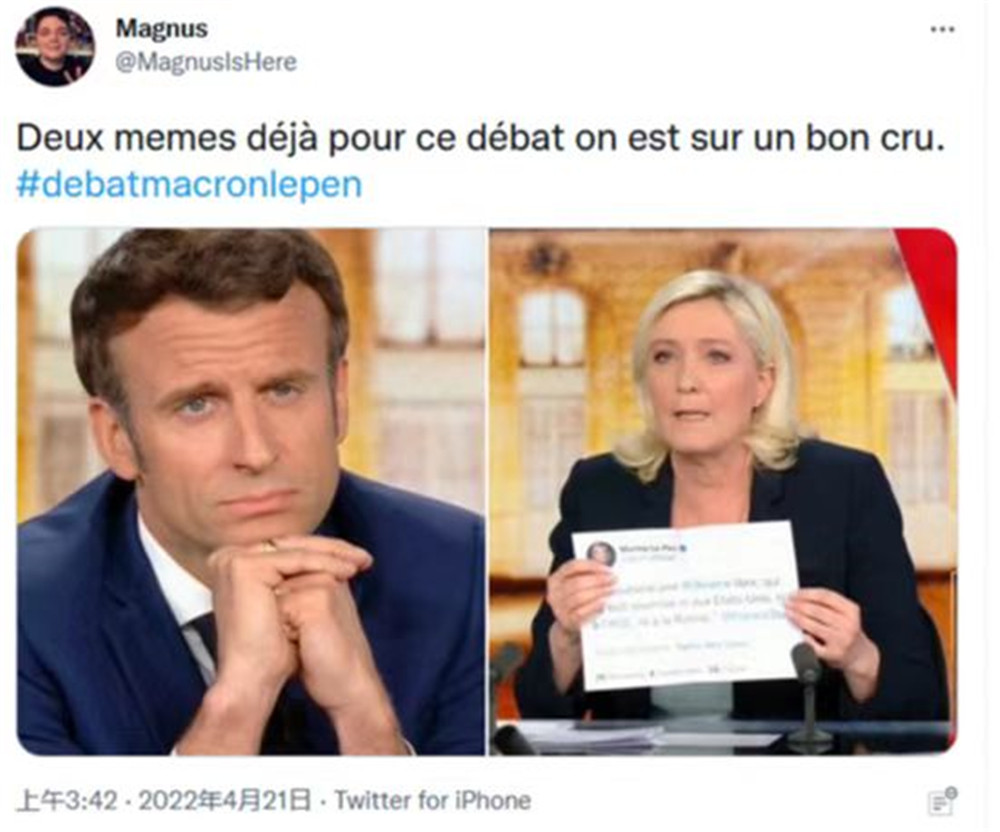 【欧洲时报4月21日夏莹编译】针对法国大选候选人马克龙和勒庞在20日进行的电视辩论,网民们充分发挥了他们的创造力。