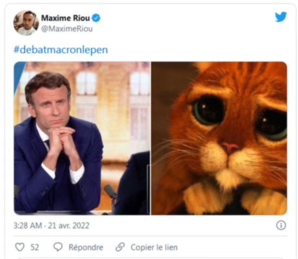法国“BFMTV”报道,这是许多网民所期待的时刻。两轮选举之间的这场辩论是让两个候选人将竞选纲领进行碰撞的机会,而对那些具有创造力的网民来说,这也是个展示“才华”的好机会。
