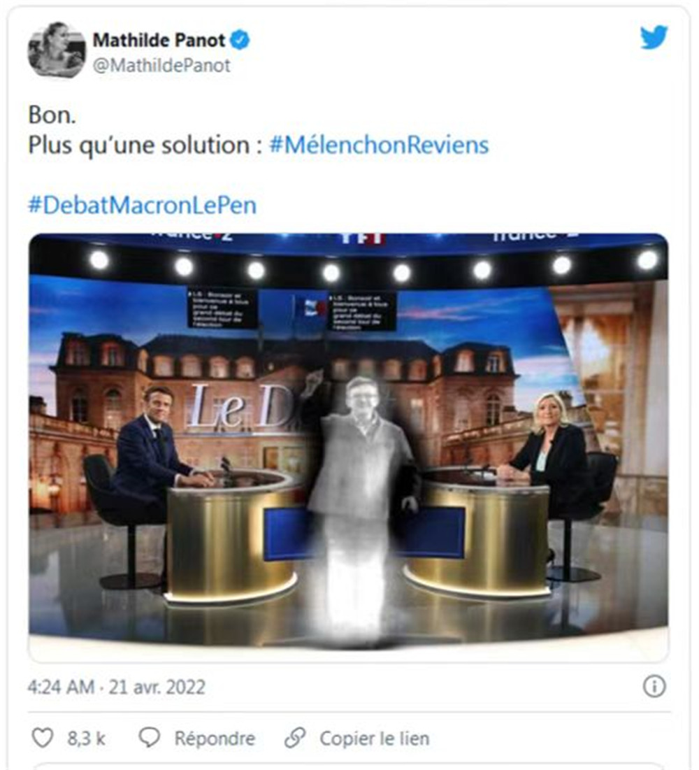梅朗雄的全息图,佩克雷斯呼吁捐款,伊达尔戈的分数……虽然在第一轮选举之前,12名候选人没有进行辩论,但在这场两轮选举之间的辩论中,网民们没有忘记爱丽舍宫的前竞逐者们。
