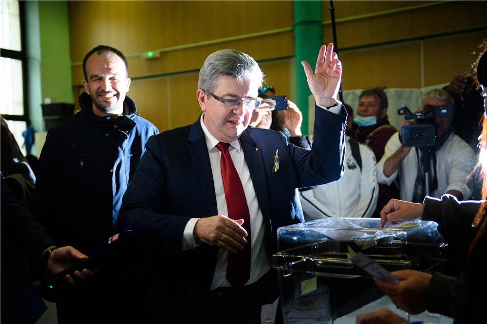 4月10日,法国极左翼政党“不屈法国”党候选人让-吕克·梅朗雄在马赛的一处投票站投票。(图片来源:新华社)