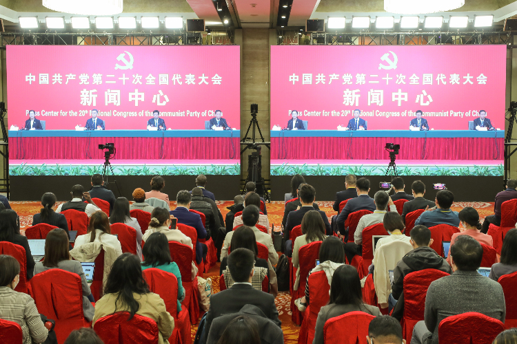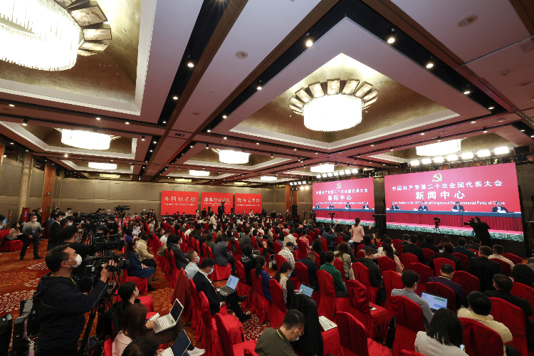 中共二十大新闻中心举行第一场记者招待会分会场。(图片来源:新华社)