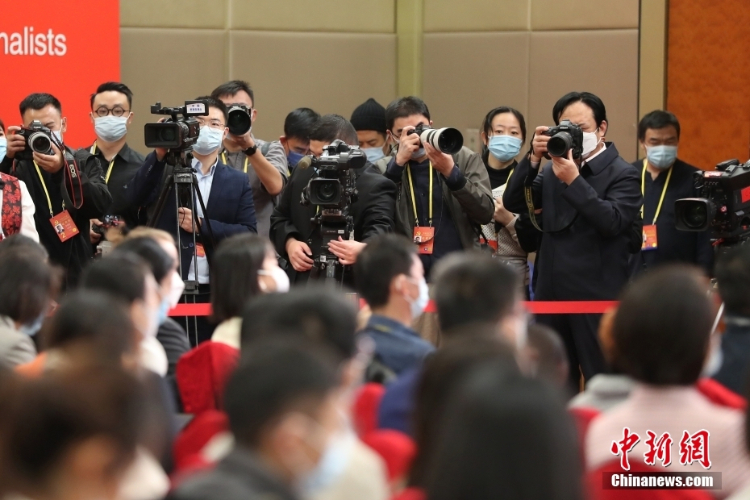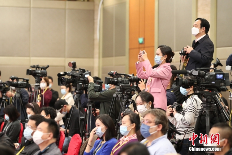 记者在分会场参加记者招待会。(图片来源:中新网)