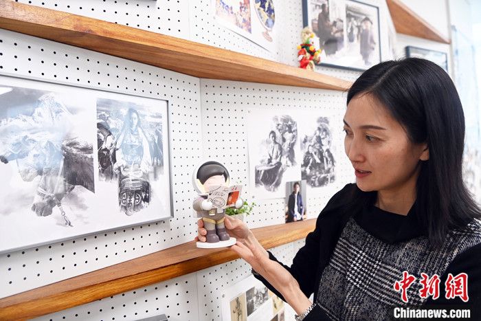 2月20日,陈天竺介绍读者出版集团推出的“太空阅读者”手办。(图片来源:中新网)