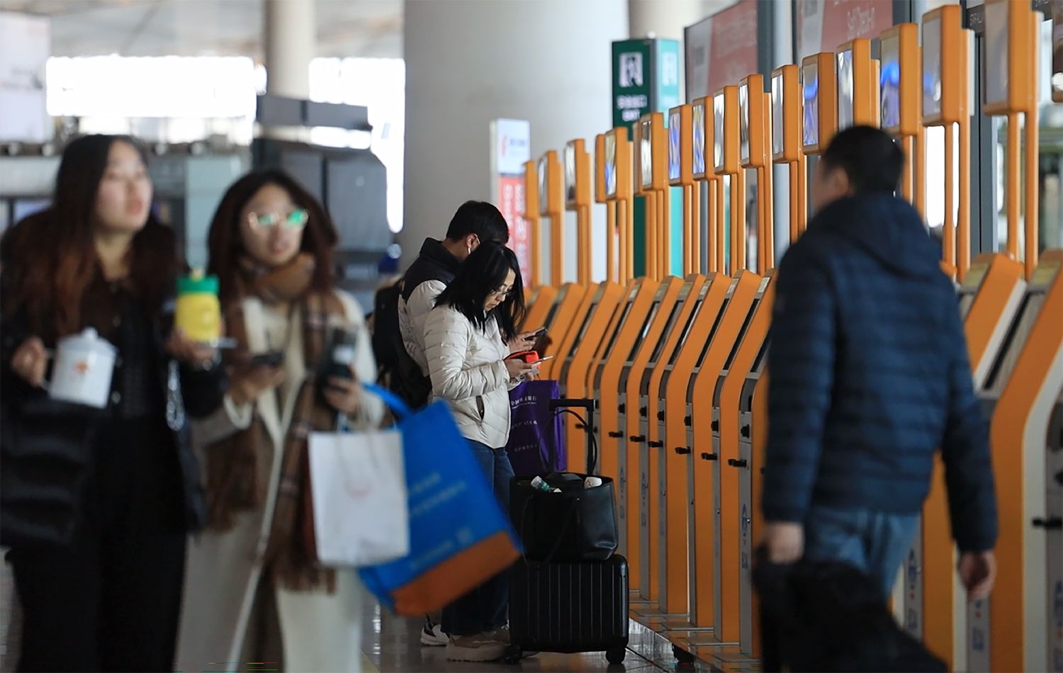 2023年12月1日,旅客在北京首都国际机场T3航站楼办理登机相关手续。(图片来源: 欧洲时报特约记者 卞戈 摄)