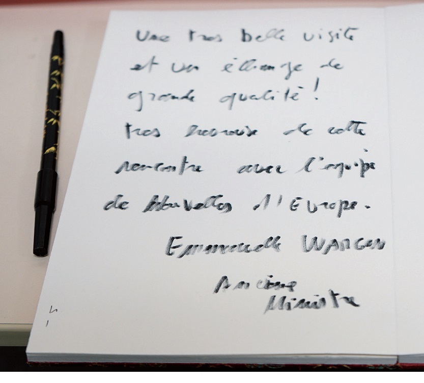 采访结束后,瓦贡用“毛笔”为欧时留下了寄语:“参观活动和沟通内容都很精彩!很高兴和欧时团队见面交流——瓦贡”。