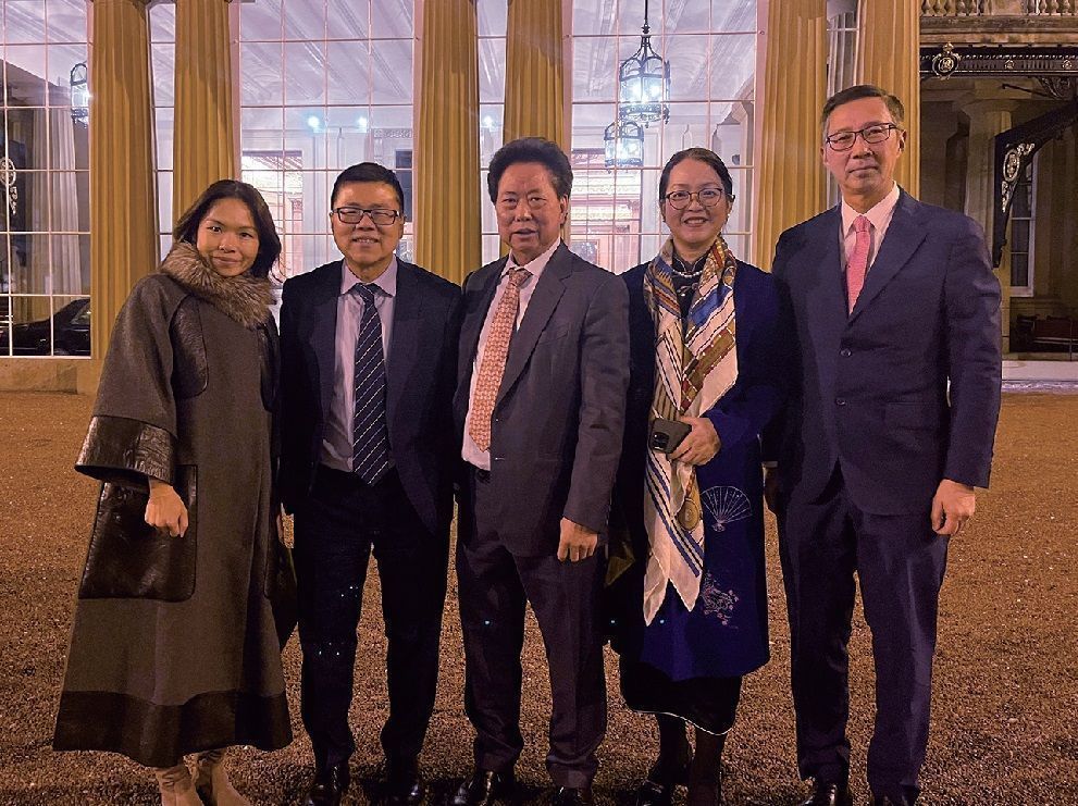 伦敦华埠商会主席邓柱廷OBE(中)携商会发言人李汉基(右一)、秘书长黄萍(右二)、副会长曾百明(左二)、执委林忆筠(左一)出席了招待会。本文图片除注明外均由欧洲时报记者严振羽摄