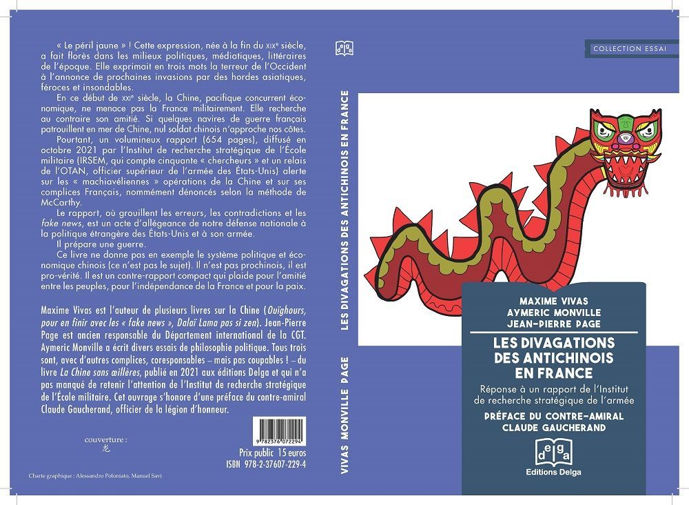 【欧洲时报靖树报道】在为维瓦斯(Maxime Vivas)、蒙维尔(Aymeric Monville)、帕吉(Jean-Pierre Page)3位法国作者联笔的《法国反华人士的胡言乱语》作序时,法国前海军军官克劳德·高雪朗(Claude Gaucherand)写道,这本小书可以称作是一次“大卫迎战巨人歌利亚”的尝试。