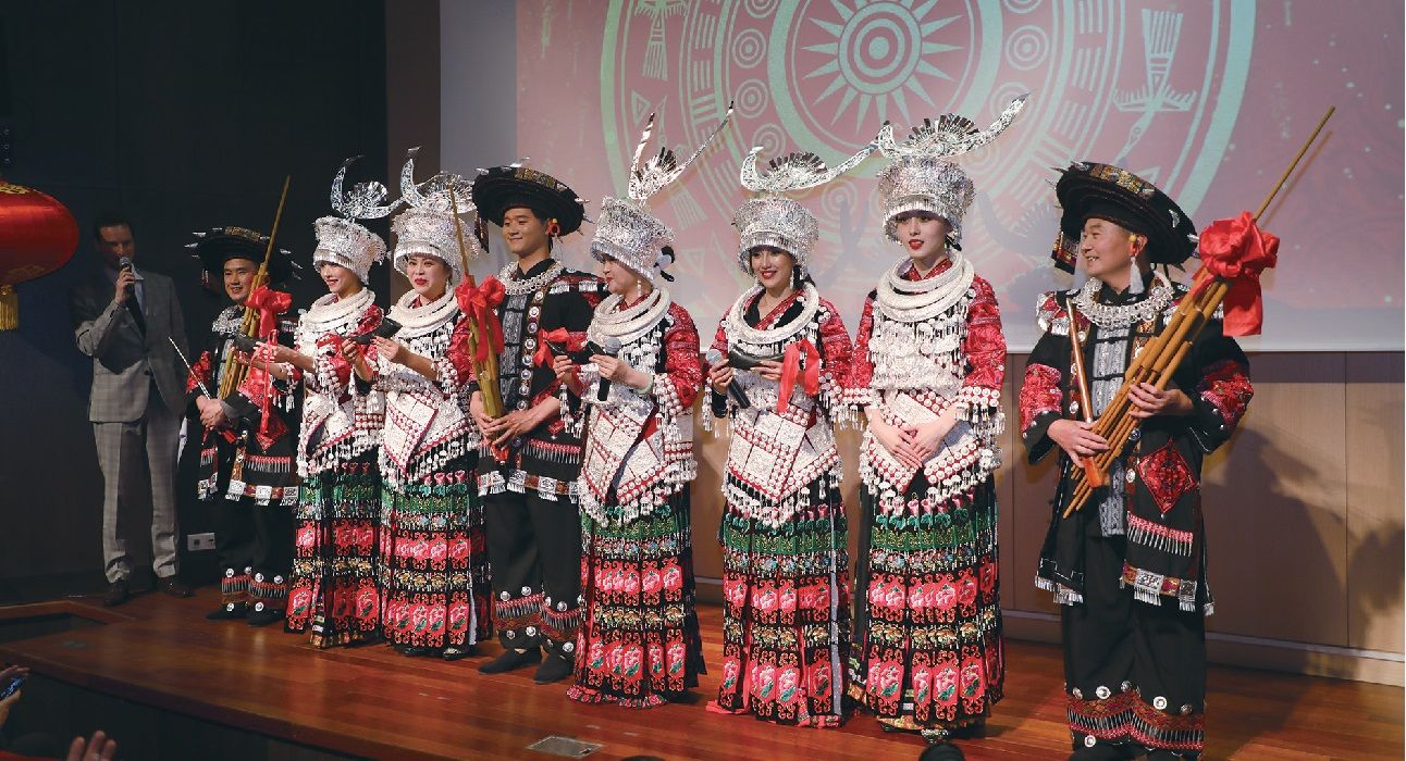 活动现场,中外观众兴致盎然地欣赏了来自贵州的民族歌舞表演。天籁之音般的侗族大歌响彻会场,苗族、侗族、水族等少数民族歌用本民族特有的方式,向法国观众发出《等你来》的友好邀请。中法双语演唱的法国艺术歌曲《燕子》,让时尚与民族相互碰撞,让世界看见贵州的多彩。