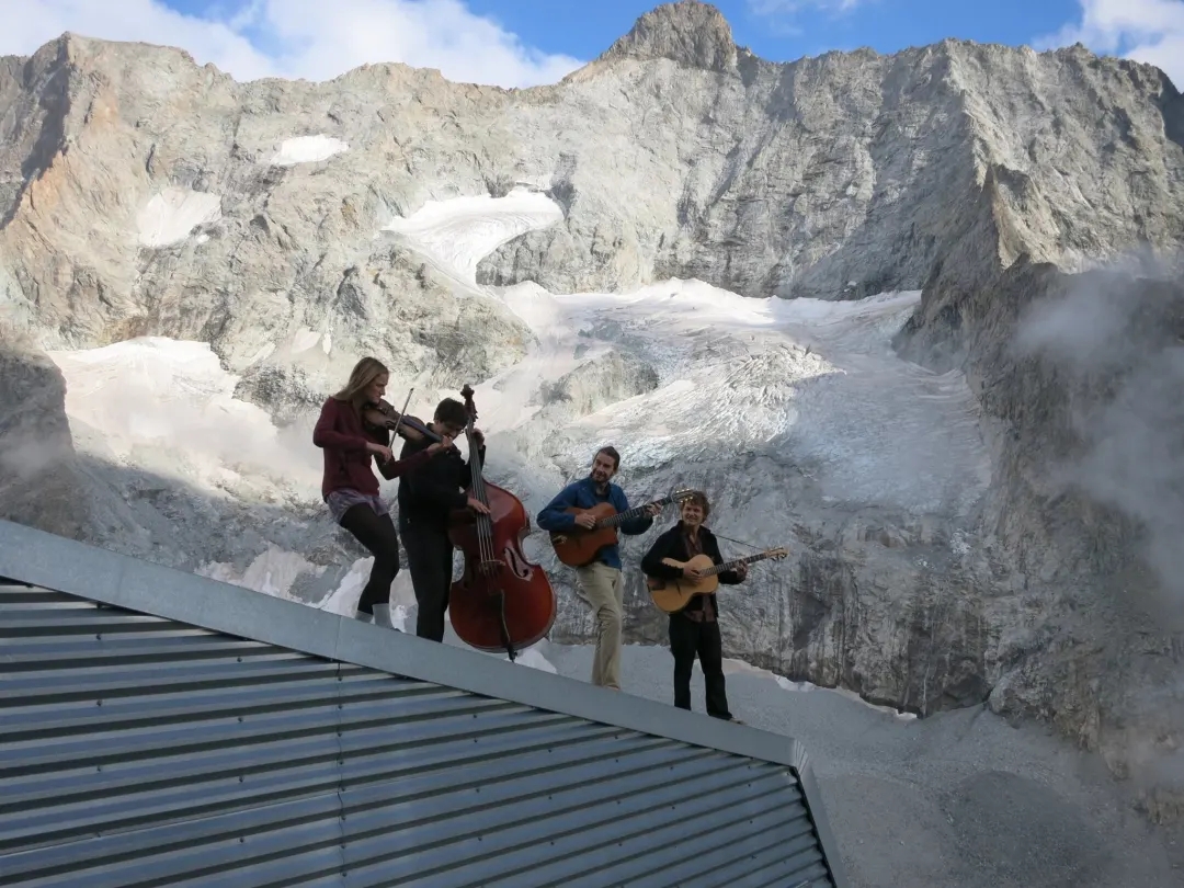 法国音乐家们背着乐器出发,在山区进行徒步巡回音乐演出。这个夏天,对徒步感兴趣的你,不妨与音乐家们来一场山间的浪漫邂逅。