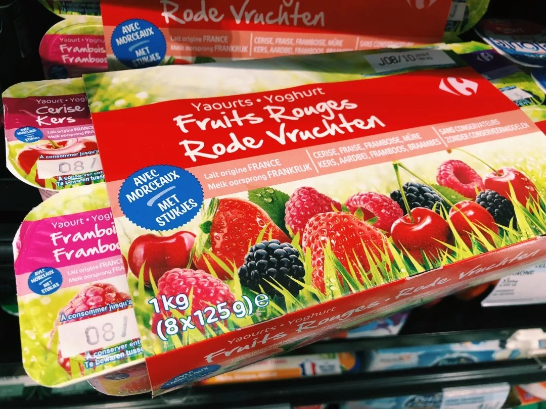 想必大多数人还是无法接受一点甜味都没有的无糖酸奶,大家可以把目光转向下面这些包装上写有0%de Matières Grasses的脱脂酸奶,这一种酸奶的含糖量通常较普通酸奶低。