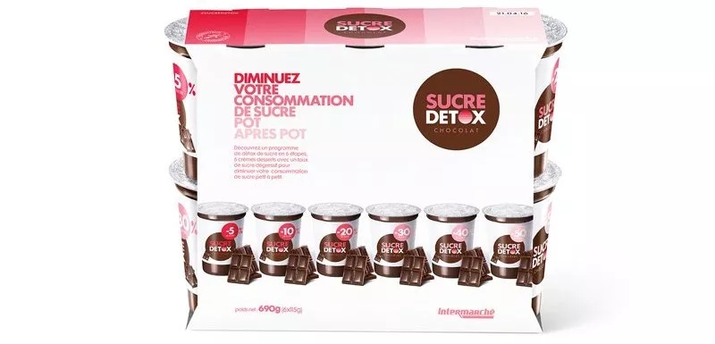 法国连锁超市 Intermarché 推出了的一款自有酸奶品牌Sugar Detox。这款巧克力口味的酸奶是为了帮助用户戒掉对糖的依赖而设计,但是和传统的健康食品简单地剔除某些成分或选用替代品不同,Sugar Detox 并不是简单的 “无糖酸奶”,而是用层层递进的方法帮助消费者“脱瘾”。