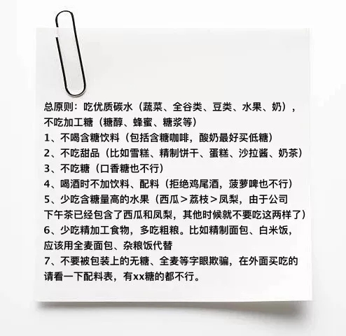 其实抗糖化不是让你彻底截断糖份,我们不必过于纠结食物里的糖分含量,只需要渐渐放弃甜食或者加工产品就最直接有效了。我们参照了“黎贝卡的异想世界”里有一篇是讲“21天戒糖挑战的,我觉得里面的“戒糖法则”总结得十分到位了,贴出来给大家参考一下。