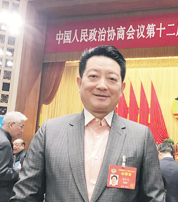 中国全国政协委员、仁和集团董事局主席杨文龙在大会现场。(图片来源:本文图片均由欧洲时报特派记者孔帆 摄)