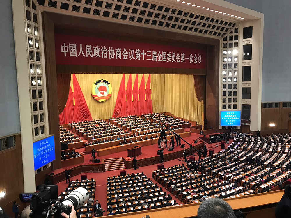 全国政协十三届一次会议3月3日下午15时在北京人民大会堂开幕。(本文图片均由欧洲时报记者 黄冠杰 摄)