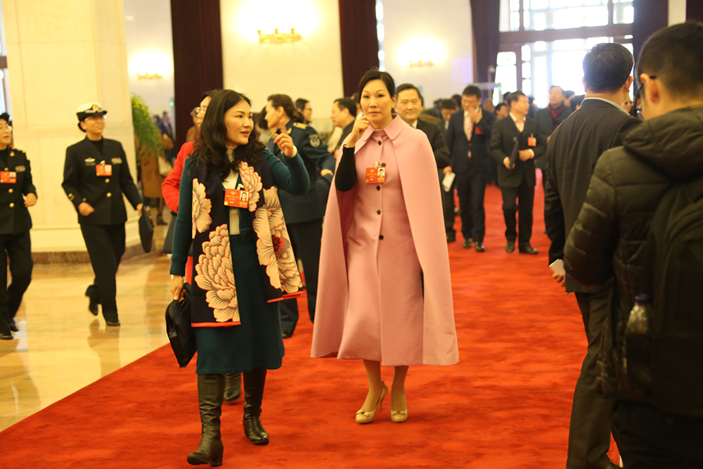 参加全国政协十三届一次会议开幕式的政协委员们正在步入会场。