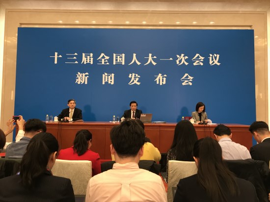 十三届全国人大一次会议于3月4日举行新闻发布会,张业遂担任发言人。(图片来源:本文图片均由欧洲时报特派记者黄冠杰 摄)