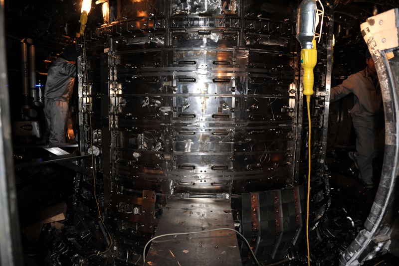 图为中国科学院合肥物质科学研究院等离子体物理研究所内俗称“人造太阳”的全超导托卡马克实验装置。(图片来源:中新社)