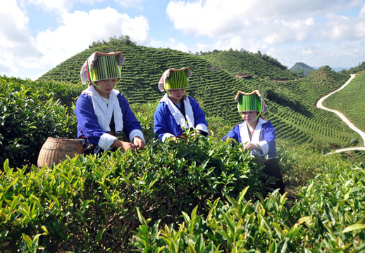 图为土瑶民众在采茶。(图片来源:中新社)