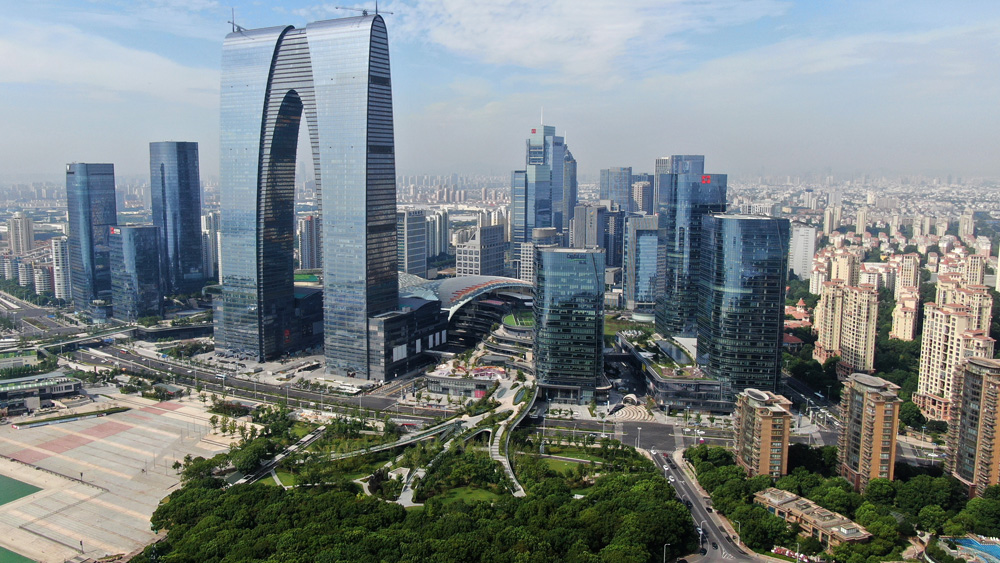 图为航拍苏州工业园区。2019年,苏州市新设外商投资项目475个。(图片来源:中新社)