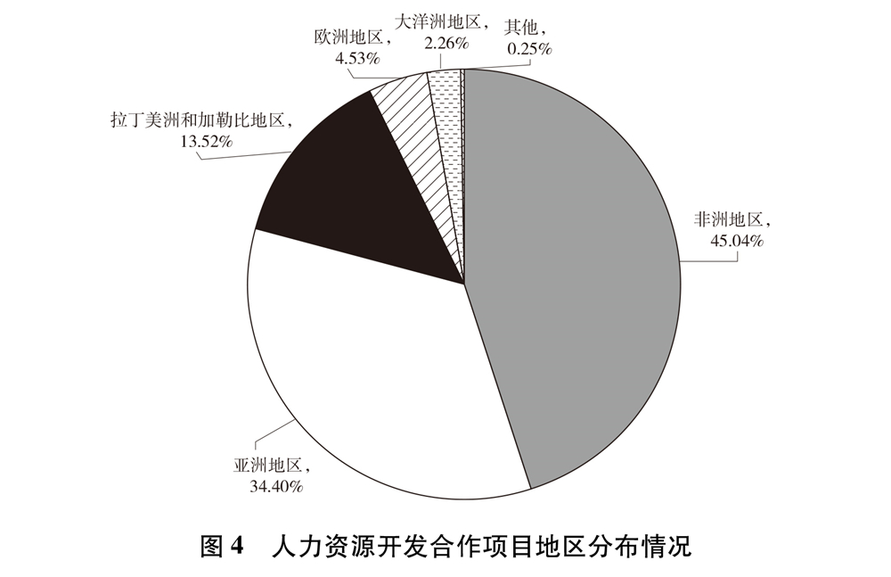 白皮书中“人力资源开发合作项目地区分布情况”图表。
