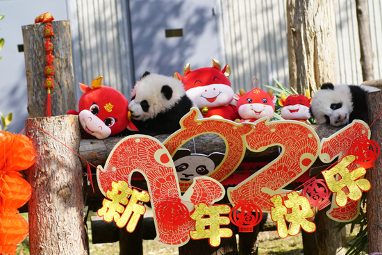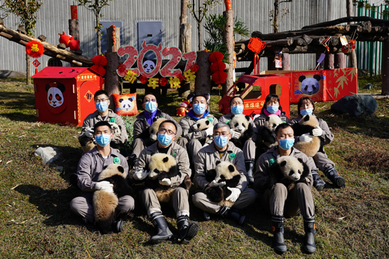 中国大熊猫保护研究中心10只2020年出生的大熊猫宝宝2月3日集体亮相四川卧龙神树坪基地,向全国人民送上新春祝福。