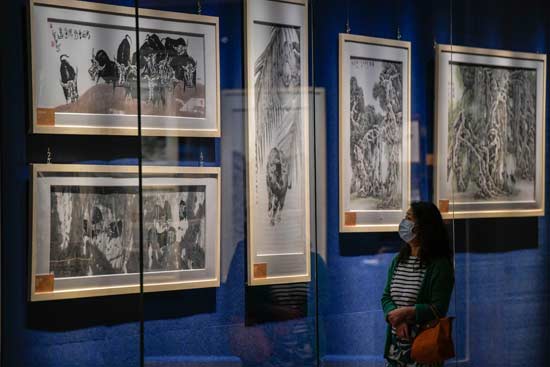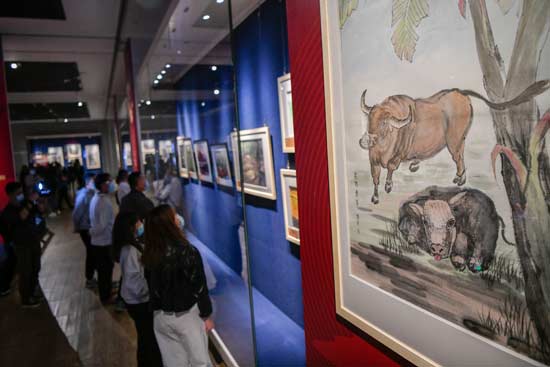 中新社报道,2月7日,海南海口,海南省博物馆推出“牛牛食草莫相触--牛年牛艺术展”,特邀艺术家以牛为主题进行艺术创作,为观众呈现牛年文化盛宴。