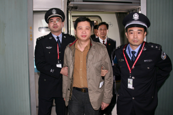 资料图为“红通人员”王海鹏2016年3月从美国纽约回国投案。(图片来源:中新社)