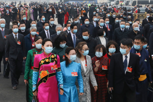 全国人大代表走向会场。(图片来源:本文图片均自中新社)