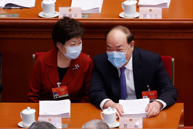 澳门特别行政区行政长官贺一诚(右)列席开幕式。