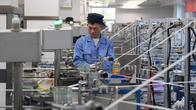 图为浙江义乌的一名工人在生产线上忙碌。(图片来源:中新社)