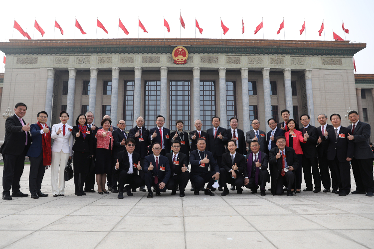 闭幕会前,港区全国人大代表在大会堂前合影留念。