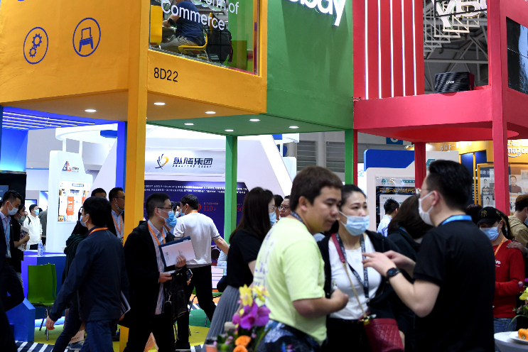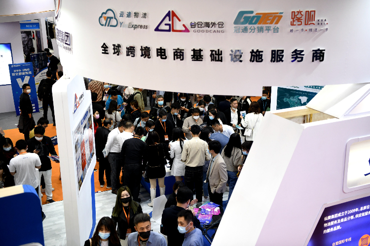 中国跨境电商交易会启幕现场。(图片来源:中新社)