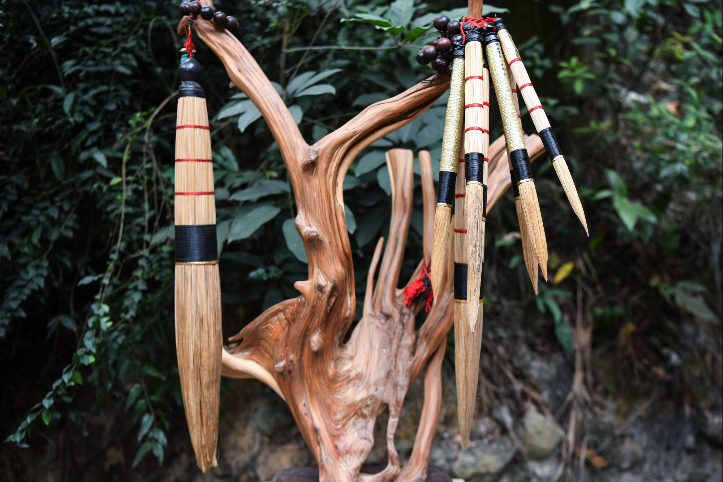 白沙茅龙笔成品及不同类型的笔头。