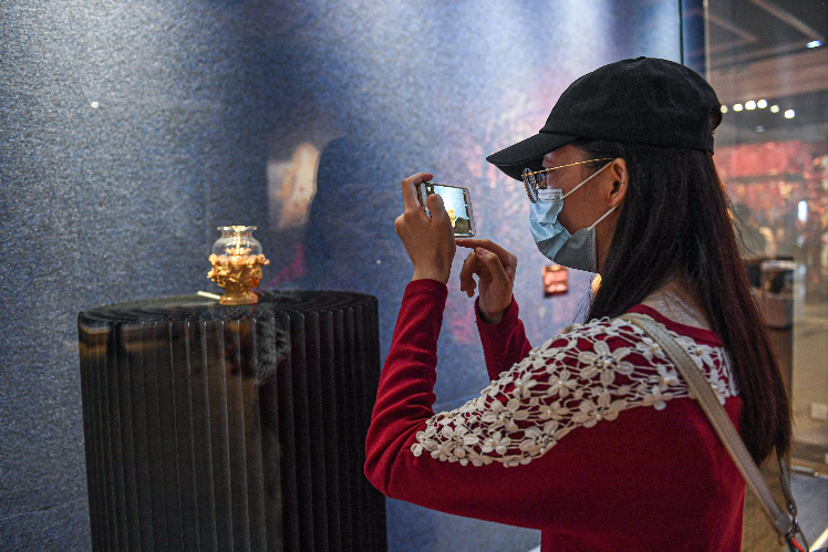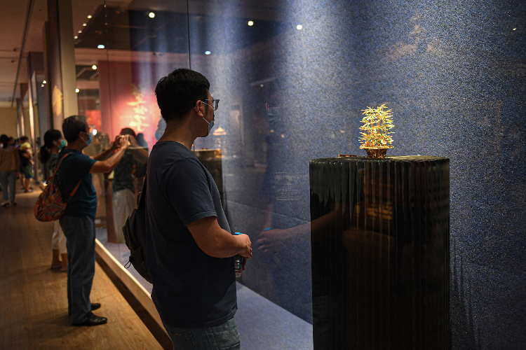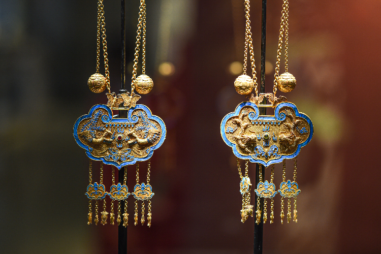 3月28日在中国海南省博物馆拍摄的花丝镶嵌艺术展展品。(图片来源:本文图片均自新华社)