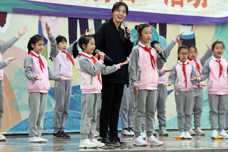 师生在活动中演唱交通安全主题歌曲。(图片来源:新华社)