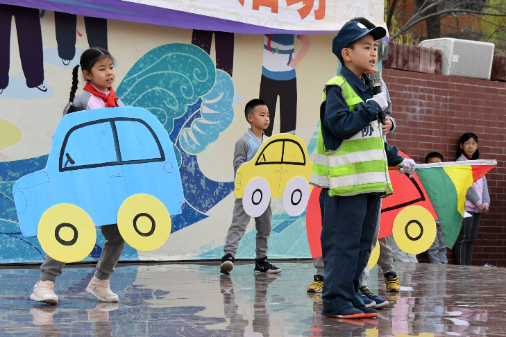 学生在活动中表演交通安全主题节目。(图片来源:新华社)