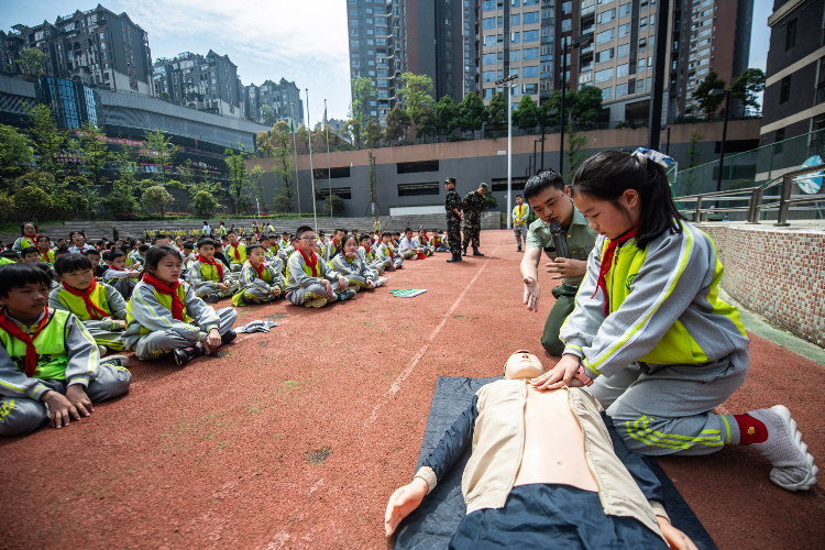中国全国中小学生安全教育日当天,芳草地国际学校中国贵阳分校开展安全教育及社会实践活动,普及应急救护知识,增强学生们的安全意识。