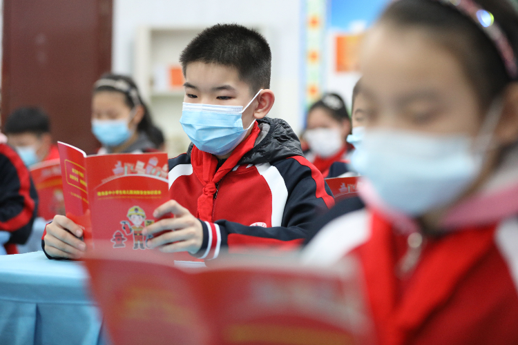 北京史家小学学生在参加安全教育日主题活动。(图片来源:新华社)
