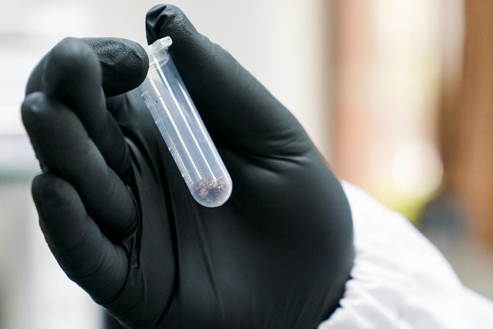 科研人员在展示通过“光催化贵金属溶解”技术提取出的贵金属。