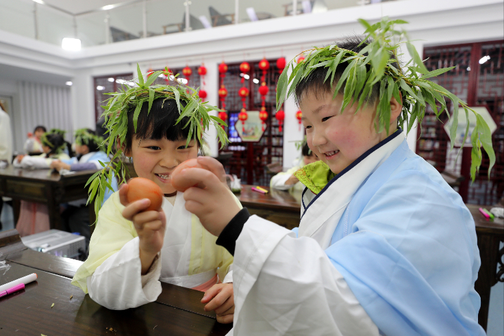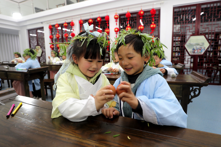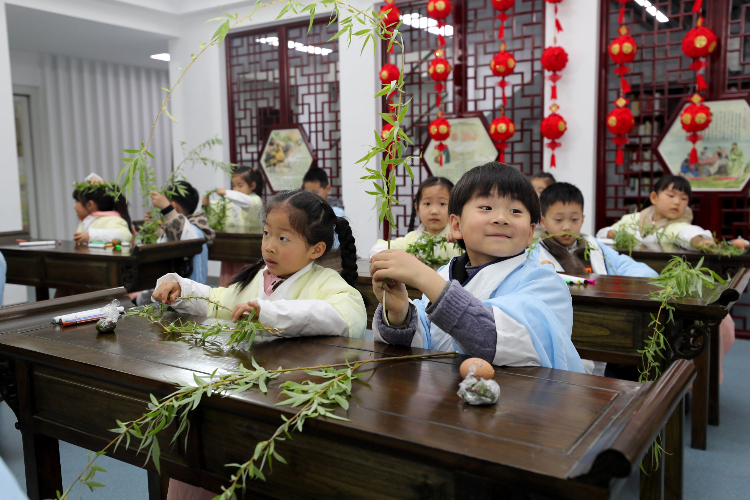 品青团、编柳环、碰彩蛋,中国安徽国学课堂话“清明”