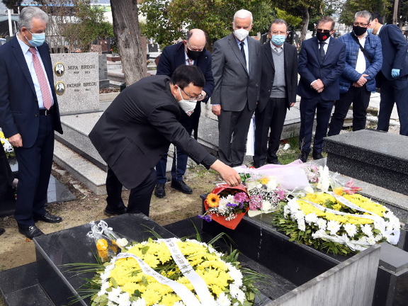 4月2日,中国驻突尼斯大使张建国率使馆馆员及在突中资机构代表前往突尼斯市布尔杰勒公墓,缅怀为援突项目和中突友好事业而献出宝贵生命的工程技术人员。布尔杰勒公墓埋葬着9名在突因公殉职的中国企业员工。