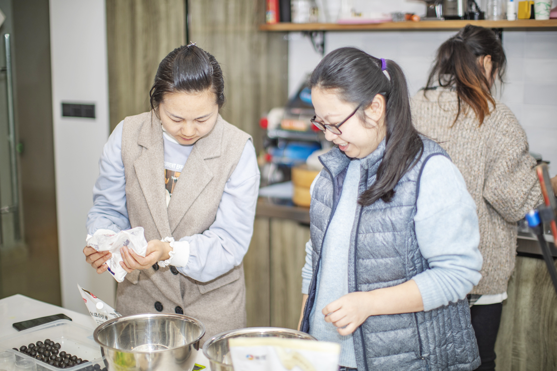 3月26日,在重庆市渝北区,两名学员在欧阳勤芸的工作室内学习如何制作花式馒头。