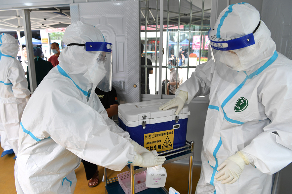 2020年5月13日,福建省人民医院的工作人员进行新冠肺炎病毒核酸检测。(图片来源:中新社)