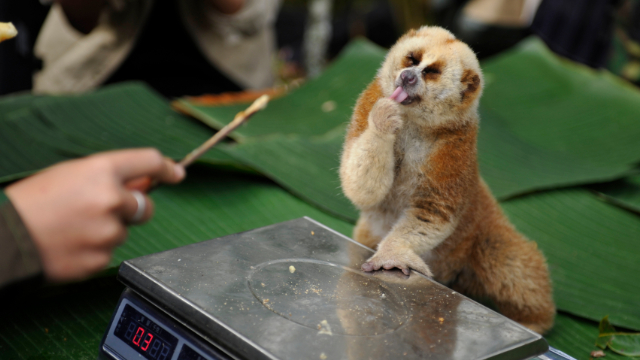据了解,蜂猴是国家一级重点保护野生动物。当蜂猴受到攻击时,在其胳膊肘内侧的腺体能够产生毒素,梳理毛发时,毒素会遍布它们的皮毛。当捕食者在树上时,它们会滚成一个球,只留下有毒的皮毛在外面,从而逃避危险。