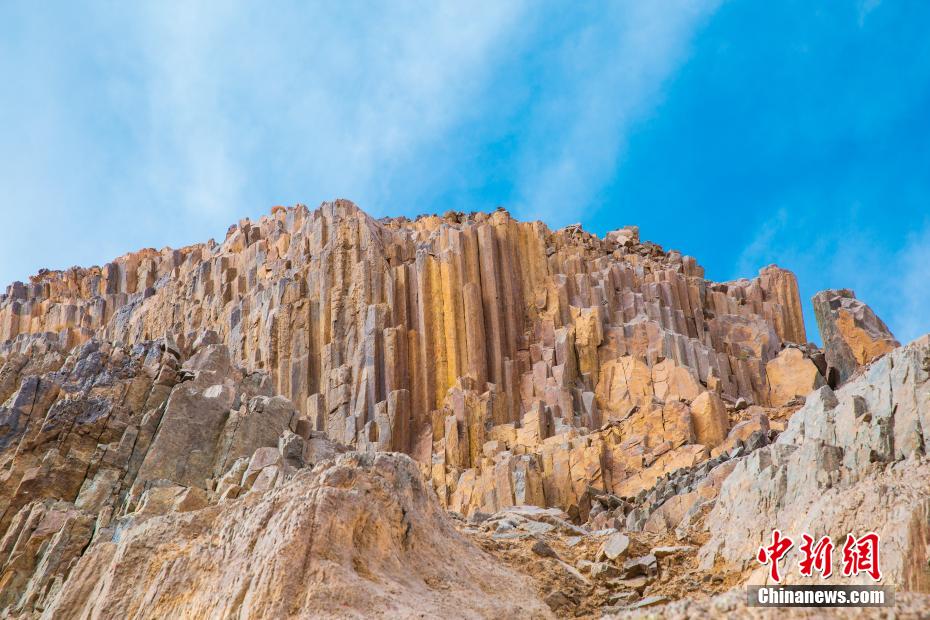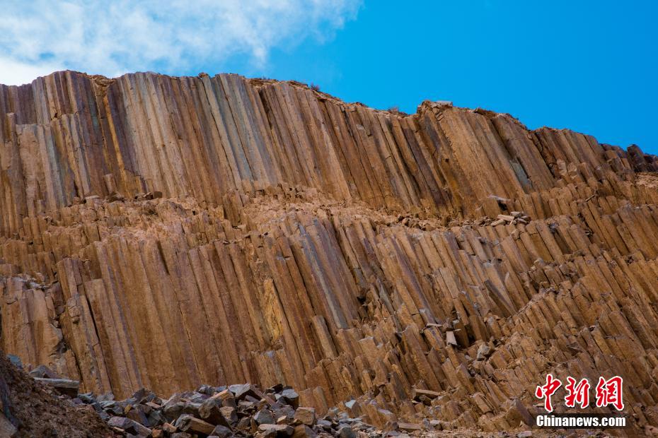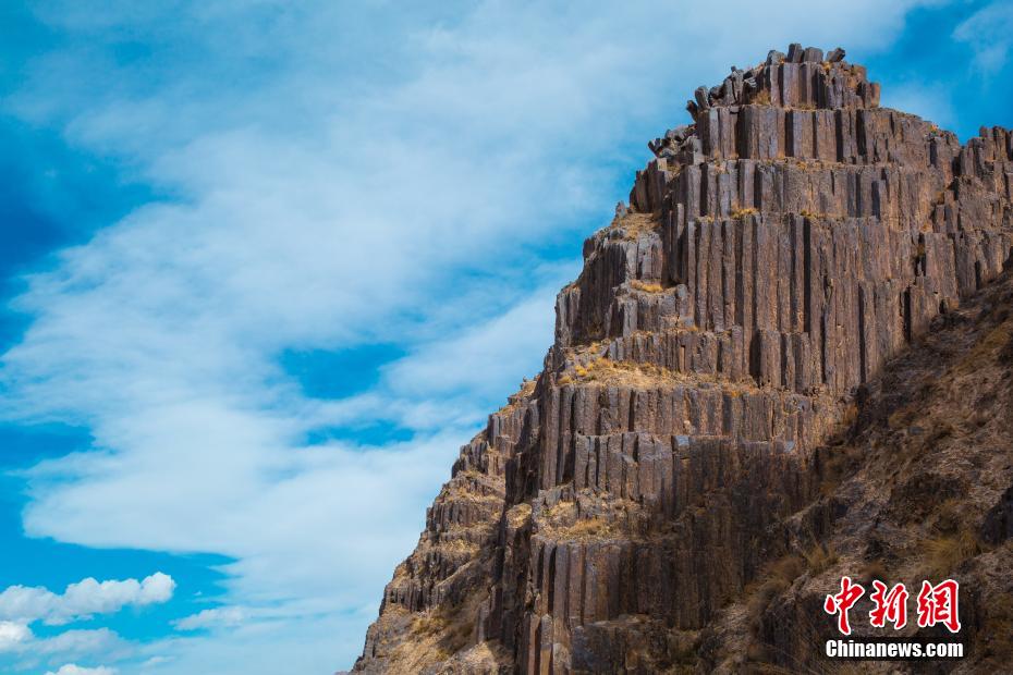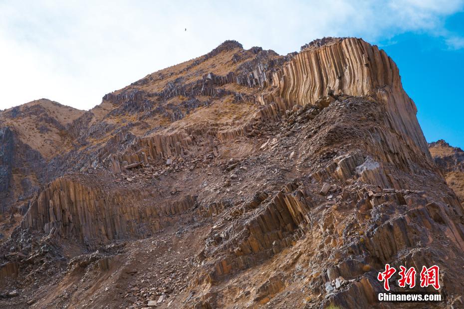 青海发现距今2.2亿年火山岩柱状节理群 酷似“巨锏”立山巅