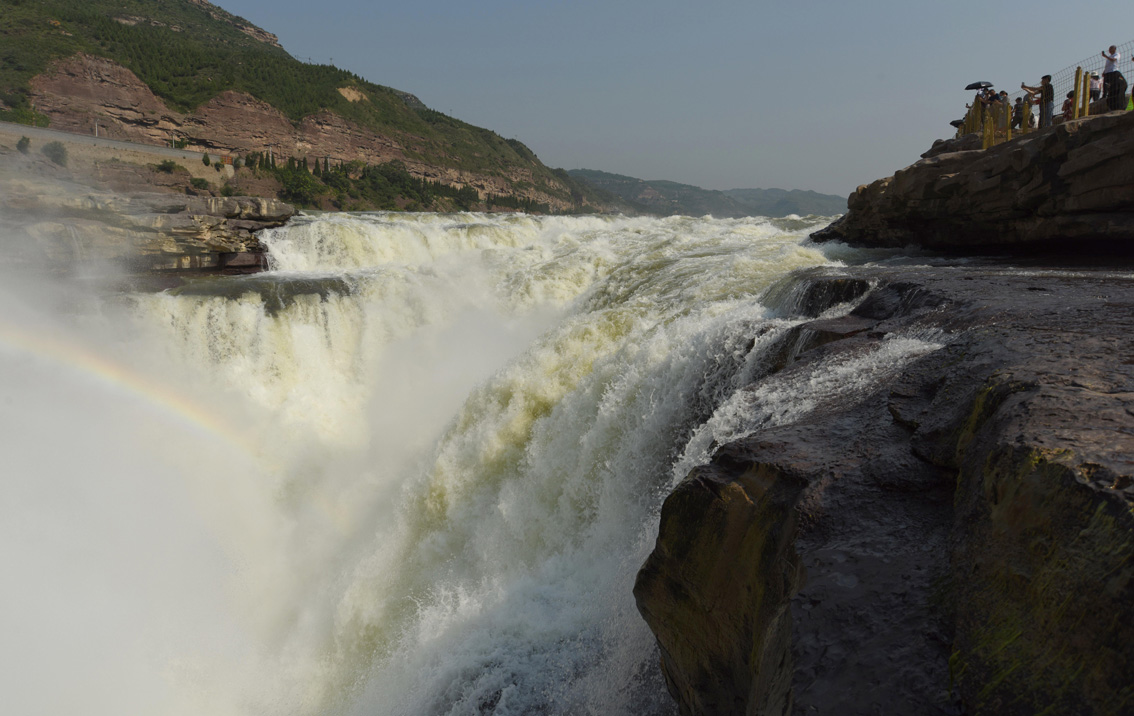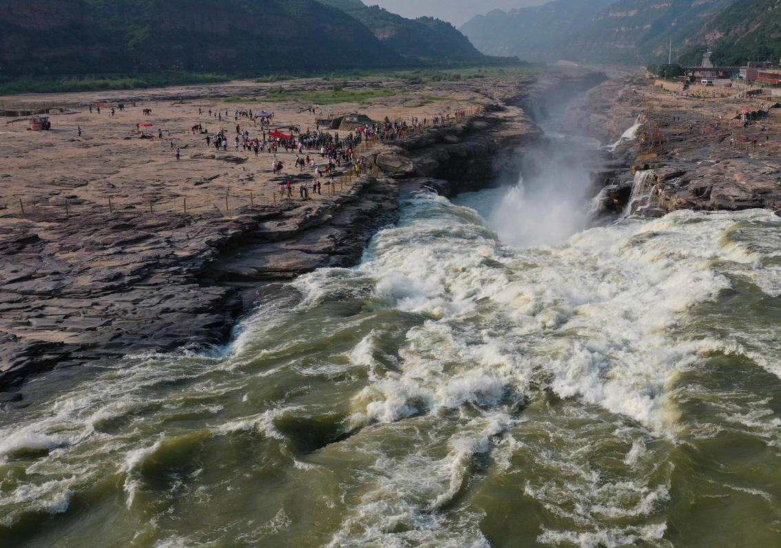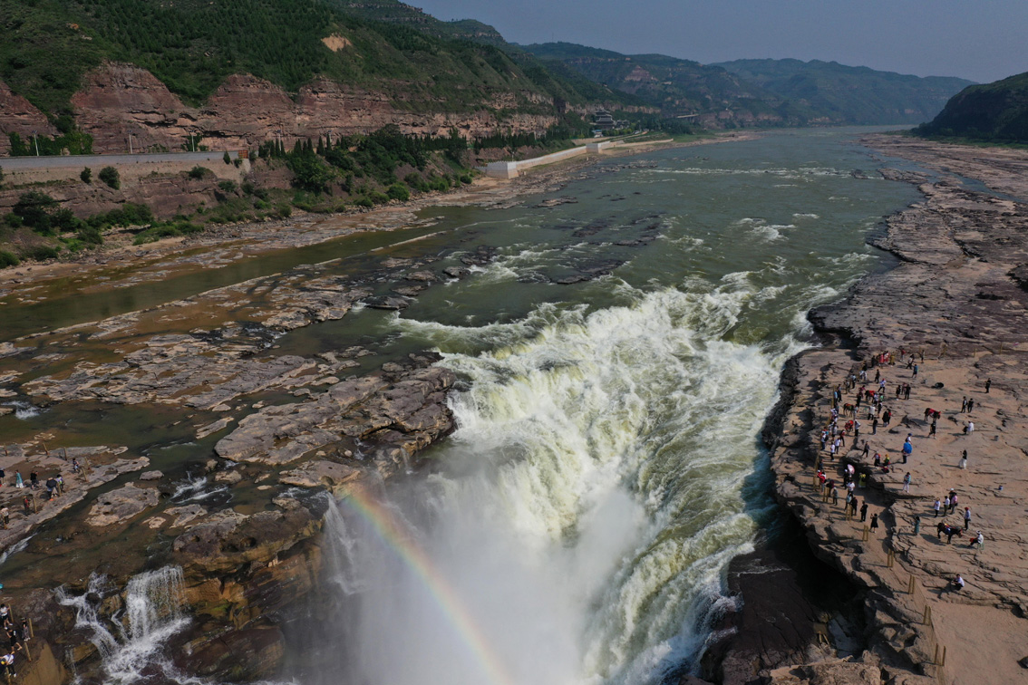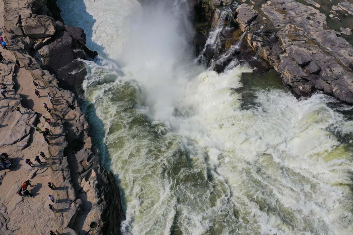 黄河壶口瀑布现“清流飞瀑”景观